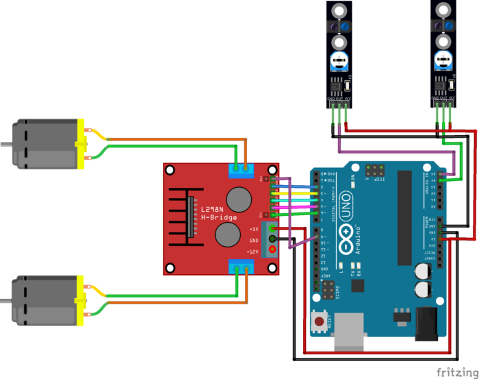 if((digitalRead(R_S) == 0)&&(digitalRead(L_S) == 0)){forword();} //if Right Sensor and Left Sensor are at White color then it will call forword function