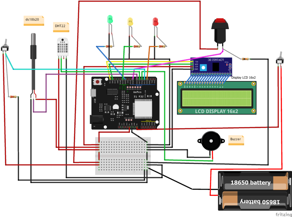 - The heart of this project is an Arduino microcontroller (such as the Arduino Uno or Nano) equipped with a temperature sensor DHT22 for environmental measurements and a DS18B20 as a liquid temperature sensor